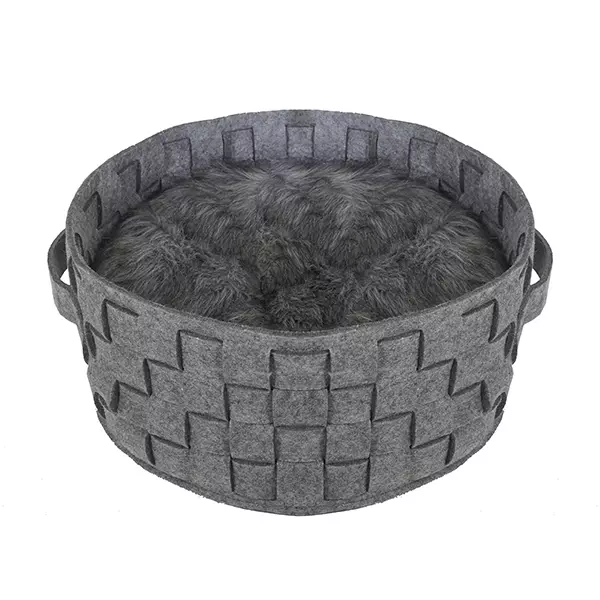 - The grey felt round shaped basket hs been designed with the modern house in mind.