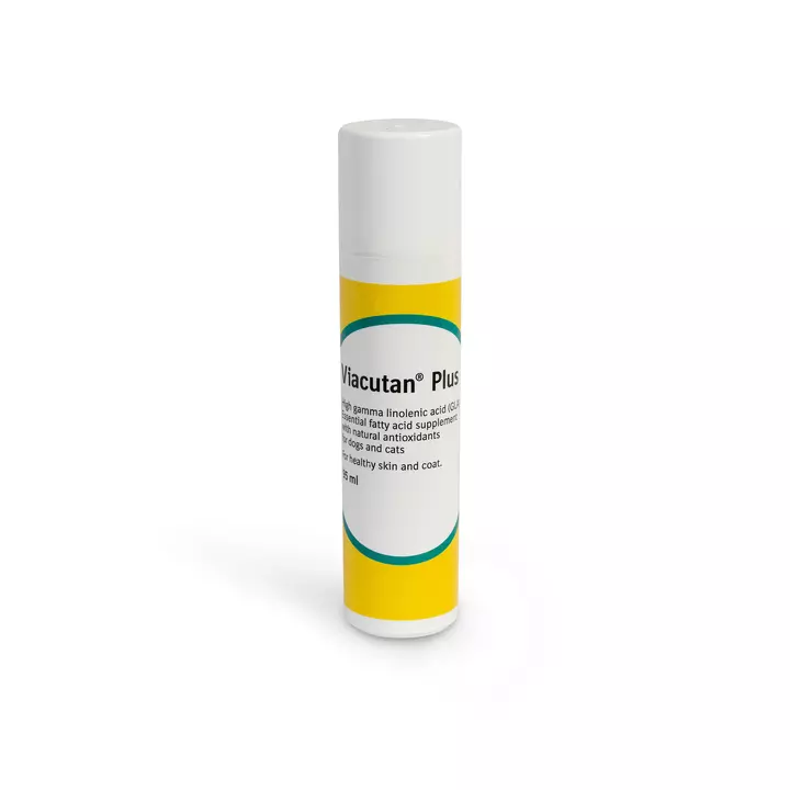 Viacutan uses the GLA (gamma linolenic acid) essential fatty acid and is a balanced combination of plant and fish oils. This provides a very high level of biologically active GLA and is used as a dietary supplement to help skin conditions the skin in dogs and cats.