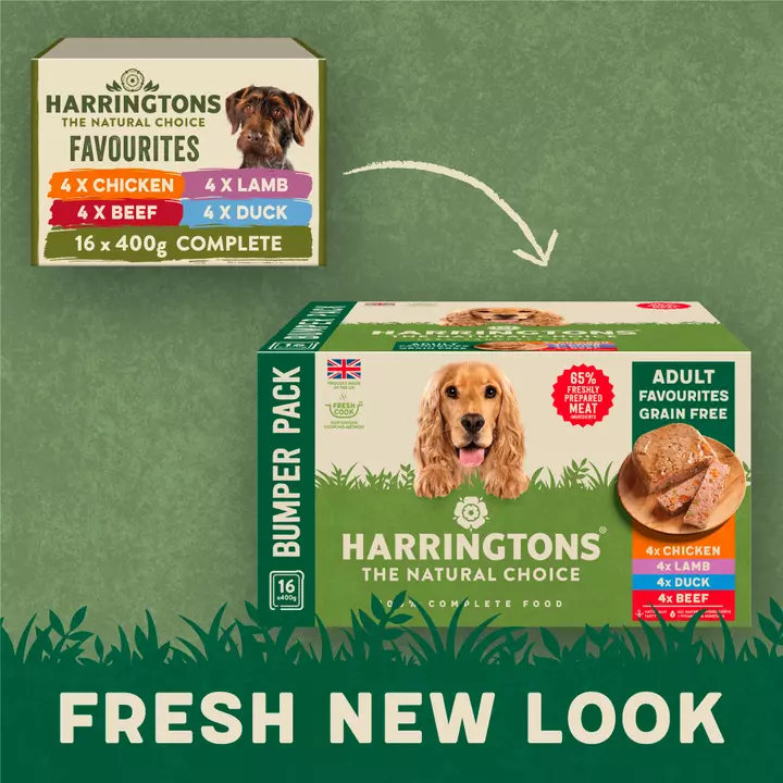 Harringtons Wet Dog Food Bumper Pack provides balanced nutrition for all adult dogs.