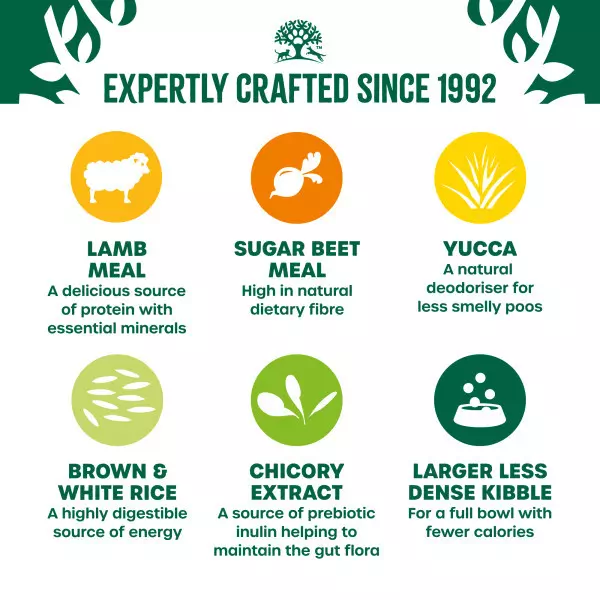 We’ve taken a handful of nature’s nourishing ingredients and combined them with flavourful lamb for highly digestible, quality protein dry dog food. Then, using all our knowledge and experience, we’ve added all the vitamins and minerals your pet needs to stay happy, healthy and full of life.