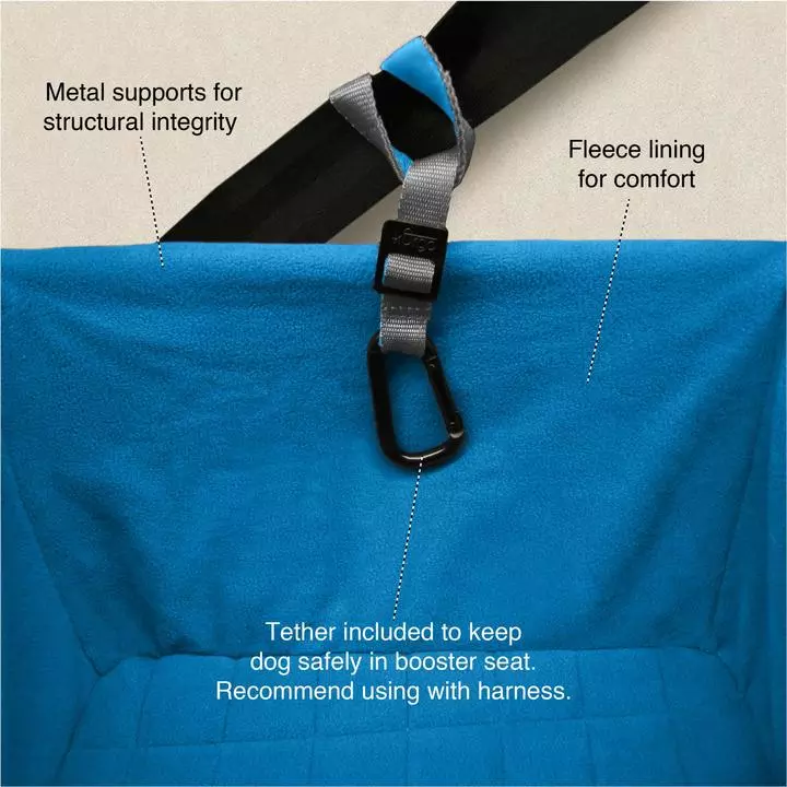 The handsome and plush heather booster seat has him styling when he sees pals from the dog park, and comfy when he doesn’t. Available in two jealousy-inducing colors, it’s a cozy seat up high, where he can keep a lookout while you drive, but stay tethered in and safely out of your lap. Installs easily, and collapses for storage. Suitable for dogs up to 30lbs; waterproof, stain resistant exterior; internal metal supports provide structural integrity; integrated tether can be attached to your dog’s harness and used with your car’s seatbelt; storage pockets; can be installed on any bucket seat; collapses down for easy storage.