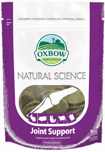 Natural Science Joint Support from Oxbow is a high-fiber supplement with various beneficial ingredients help support your small pet’s overall joint health Glucosamine aids in the prevention of cartilage degeneration, and turmeric and yucca exhibit anti-inflammatory properties.