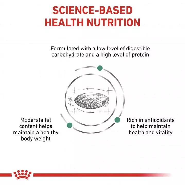 ROYAL CANIN® Feline Diabetic is specifically tailored with the needs of diabetic adult cats like yours in mind. This dry kibble product is available in either 1.5kg or 3.5kg bags. This exclusive formula is developed with reduced levels of starch, from sources with a low glycaemic index. Food with a low glycaemic index cause a slower rise in blood sugar than foods with a high glycaemic index. This ultimately supports your cat by helping to manage postprandial blood glucose (the sugar in your cat’s blood after eating) in diabetic felines. Thanks to ROYAL CANIN® Feline Diabetic’s high level of protein, this diet helps to maintain your cat’s muscle mass, which is essential for diabetic cats. Helping your cat to manage a healthy body weight supports a better response to diabetic treatment, as overweight cats tend to be less sensitive to insulin’s effects.