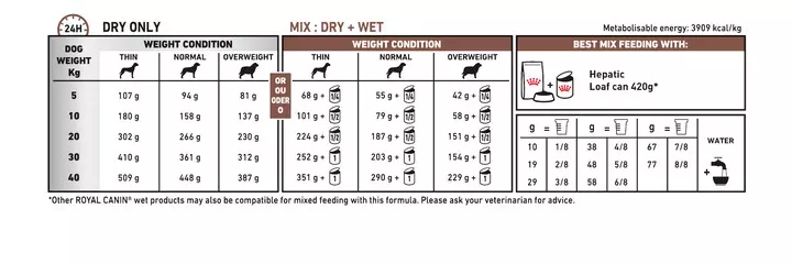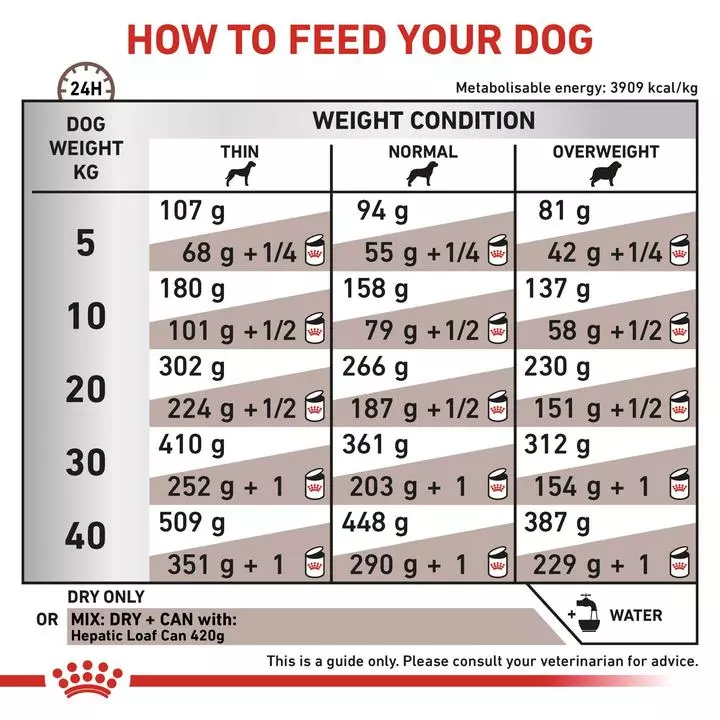 Royal Canin Hepatic provides nutritional support to dogs in cases of chronic hepatitis, copper metabolism disorders, liver disease and failure. The diet combines highly digestible vegetable proteins and a patented blend of antioxidants to protect cells and strengthen your dog’s natural defenses. With added zinc and L-carnitin to cater to the high energy needs of the liver and promote healthy internal systems. The food is specially formulated to contain reduced copper and sodium levels in order to reduce portal hypertension and extravascular water flow. Delicious and nutritious to suit even the fussiest canine appetites.