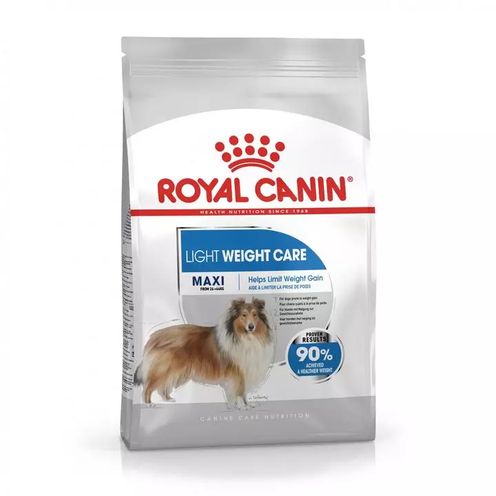 HELPS LIMITS WEIGHT GAIN 90% of slightly overweight dogs fed with ROYAL CANIN® Maxi Light Weight Care achieved a healthier weight in 8 weeks.*