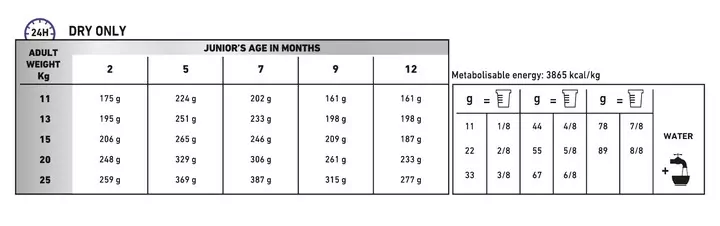 For neutered medium breed puppies (adult weight: 11 to 25kg), from neutering up to 12 months of age