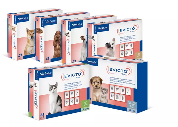 Evicto is an antiparasitic medicine used to treat and prevent infestations with parasites that live on the skin or in the fur of cats and dogs, such as fleas and mites, as well as treating worms that live inside the body. It is used in the following ways: